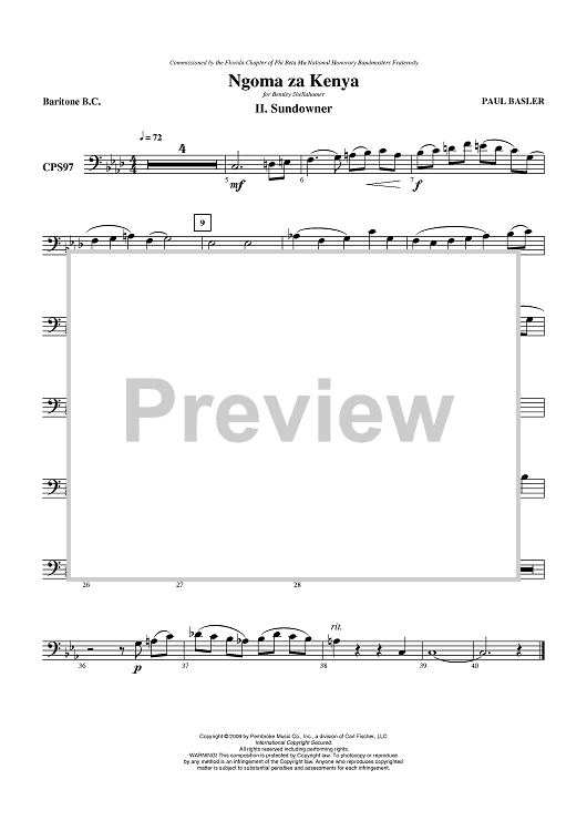 Digital Sheet Music for Ngoma za Kenya, Mvt II - Sundowner - Baritone (Bass Clef) by Paul Basler scored for Concert Band; id:405895