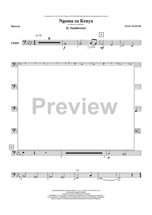 Digital Sheet Music for Ngoma za Kenya, Mvt II - Sundowner - Bassoon by Paul Basler scored for Concert Band; id:405882