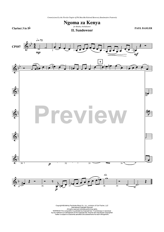 Digital Sheet Music for Ngoma za Kenya, Mvt II - Sundowner - Clarinet 3 in B-flat by Paul Basler scored for Concert Band; id:405880