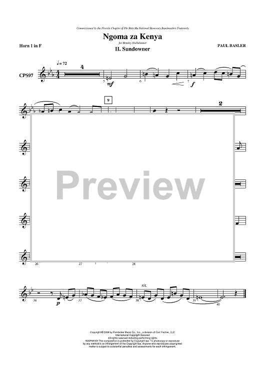 Digital Sheet Music for Ngoma za Kenya, Mvt II - Sundowner - Horn 1 in F by Paul Basler scored for Concert Band; id:405890