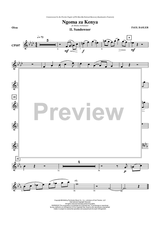 Digital Sheet Music for Ngoma za Kenya, Mvt II - Sundowner - Oboe by Paul Basler scored for Concert Band; id:405877