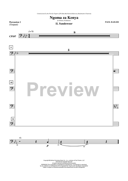 Digital Sheet Music for Ngoma za Kenya, Mvt II - Sundowner - Percussion 1 by Paul Basler scored for Concert Band; id:405897
