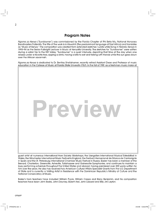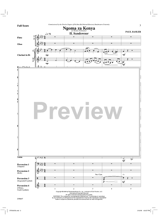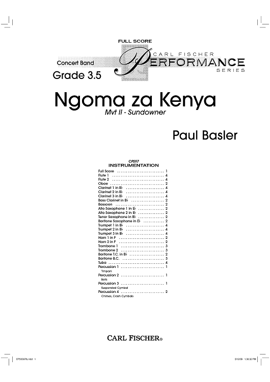 Digital Sheet Music for Ngoma za Kenya, Mvt II - Sundowner - Score by Paul Basler scored for Concert Band; id:405874