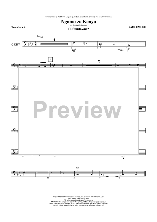 Digital Sheet Music for Ngoma za Kenya, Mvt II - Sundowner - Trombone 2 by Paul Basler scored for Concert Band; id:405893