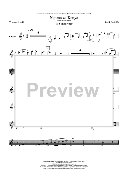 Digital Sheet Music for Ngoma za Kenya, Mvt II - Sundowner - Trumpet 1 in B-flat by Paul Basler scored for Concert Band; id:405887