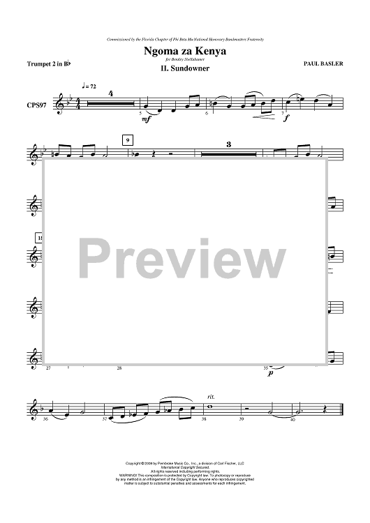 Digital Sheet Music for Ngoma za Kenya, Mvt II - Sundowner - Trumpet 2 in B-flat by Paul Basler scored for Concert Band; id:405888