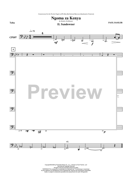 Digital Sheet Music for Ngoma za Kenya, Mvt II - Sundowner - Tuba by Paul Basler scored for Concert Band; id:405896