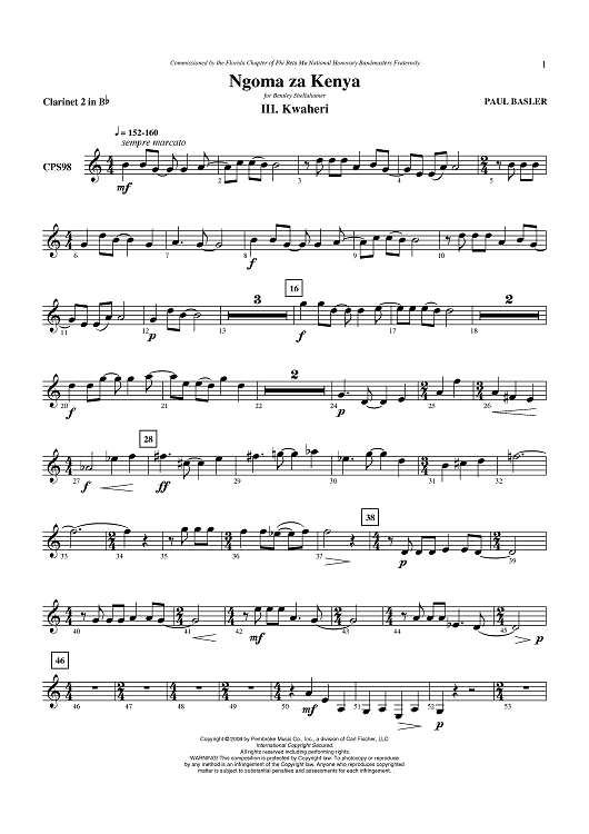 Digital Sheet Music for Ngoma za Kenya, Mvt III - Kwaheri - Clarinet 2 in B-flat by Paul Basler scored for Concert Band; id:405907