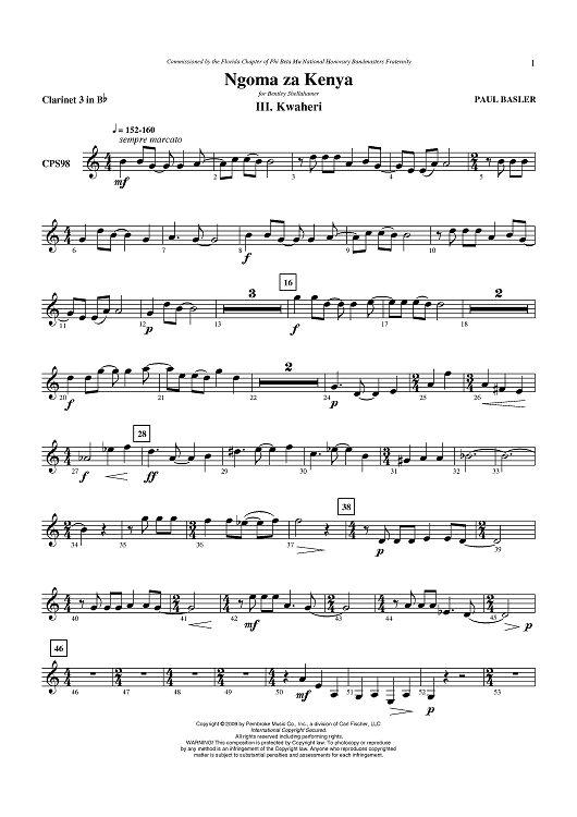 Digital Sheet Music for Ngoma za Kenya, Mvt III - Kwaheri - Clarinet 3 in B-flat by Paul Basler scored for Concert Band; id:405908
