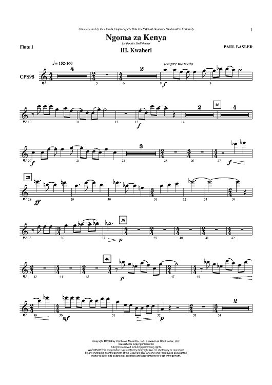 Digital Sheet Music for Ngoma za Kenya, Mvt III - Kwaheri - Flute 1 by Paul Basler scored for Concert Band; id:405903