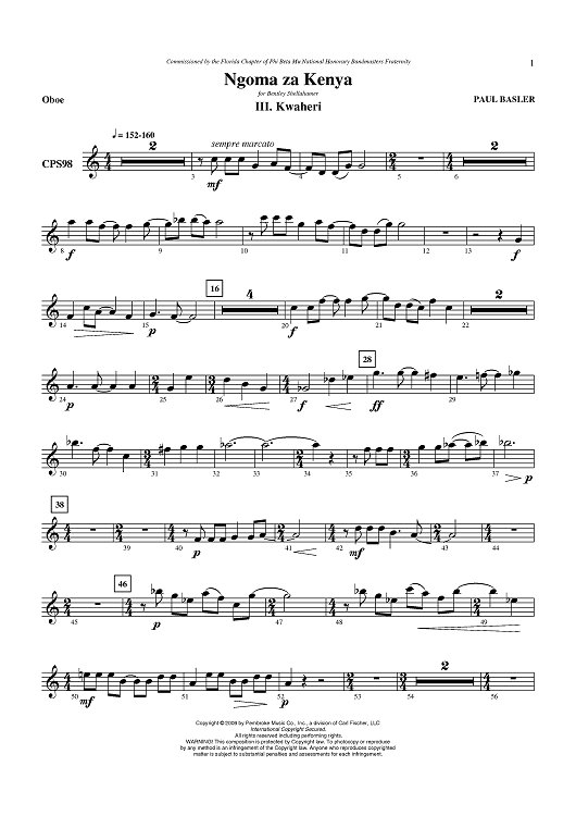 Digital Sheet Music for Ngoma za Kenya, Mvt III - Kwaheri - Oboe by Paul Basler scored for Concert Band; id:405905