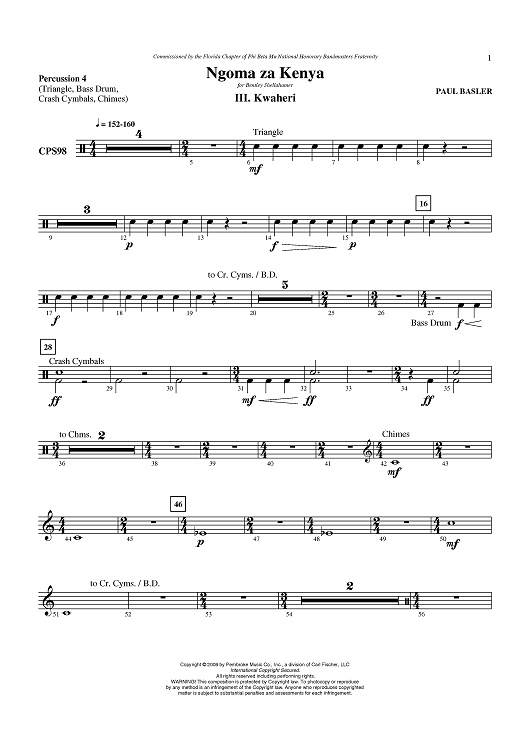 Digital Sheet Music for Ngoma za Kenya, Mvt III - Kwaheri - Percussion 4 by Paul Basler scored for Concert Band; id:405928