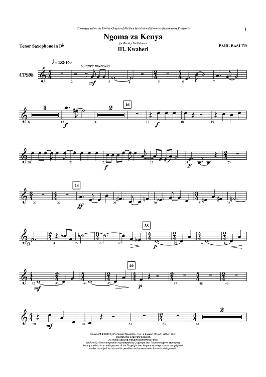 Digital Sheet Music for Ngoma za Kenya, Mvt III - Kwaheri - Tenor Sax by Paul Basler scored for Concert Band; id:405913