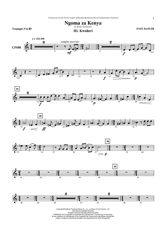 Digital Sheet Music for Ngoma za Kenya, Mvt III - Kwaheri - Trumpet 3 in B-flat by Paul Basler scored for Concert Band; id:405917