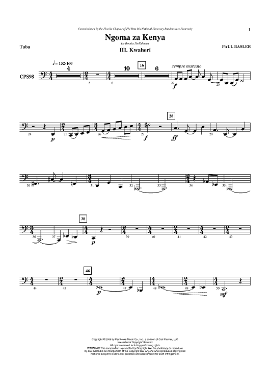 Digital Sheet Music for Ngoma za Kenya, Mvt III - Kwaheri - Tuba by Paul Basler scored for Concert Band; id:405924