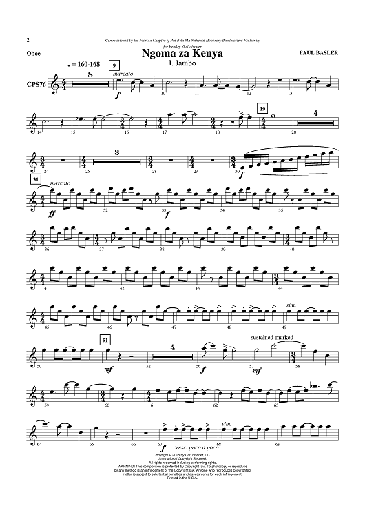 Digital Sheet Music for Ngoma za Kenya - Oboe by Paul Basler scored for Concert Band; id:408694