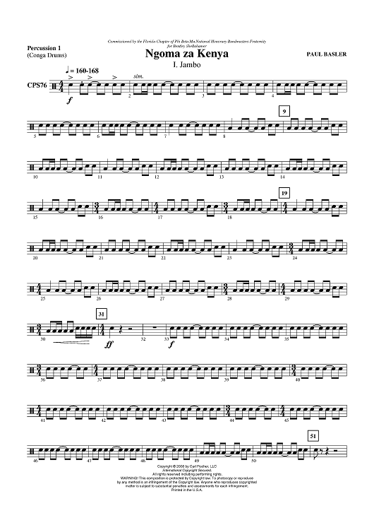 "Ngoma za Kenya - Percussion 1" Sheet Music by Paul Basler