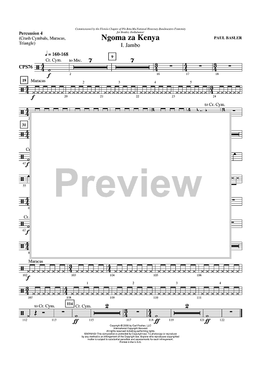 Digital Sheet Music for Ngoma za Kenya - Percussion 4 by Paul Basler scored for Concert Band; id:408717