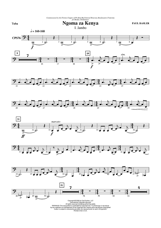 Digital Sheet Music for Ngoma za Kenya - Tuba by Paul Basler scored for Concert Band; id:408713