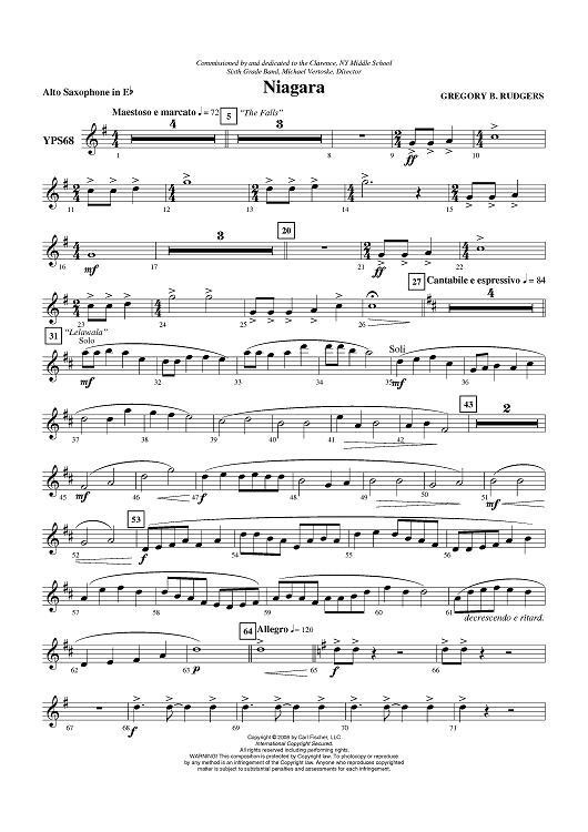 "Niagara - Alto Sax" Sheet Music by Gregory B. Rudgers