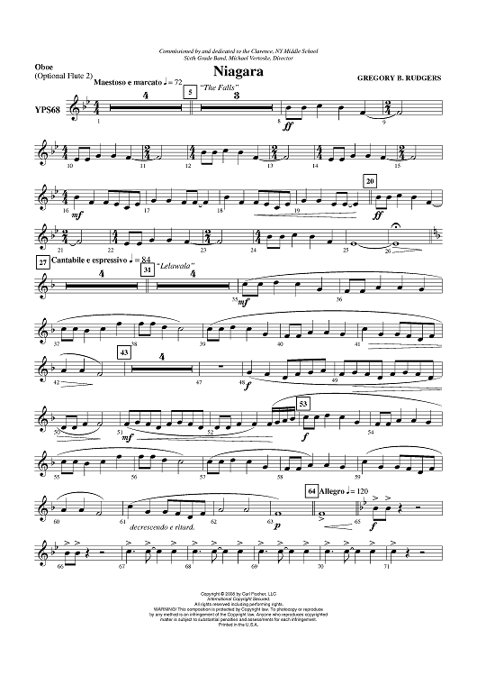 "Niagara - Oboe" Sheet Music by Gregory B. Rudgers