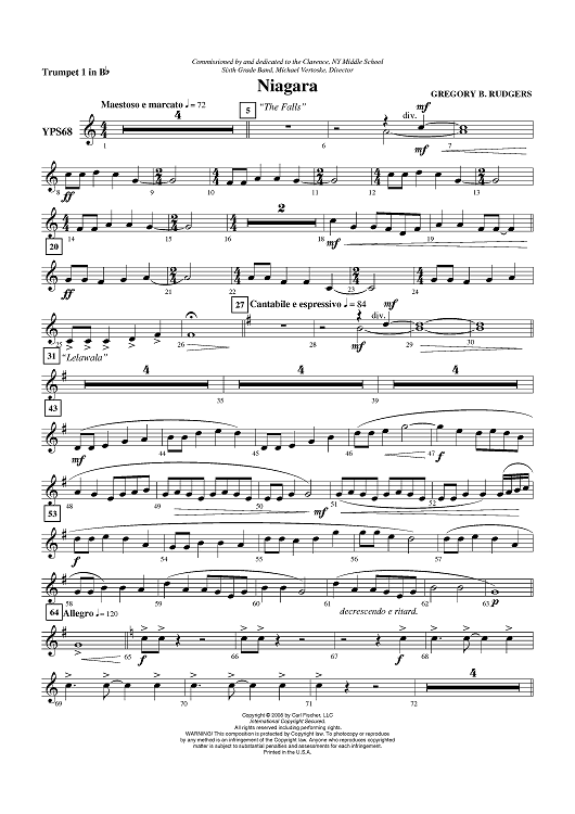 "Niagara - Trumpet 1 in B-flat" Sheet Music by Gregory B. Rudgers