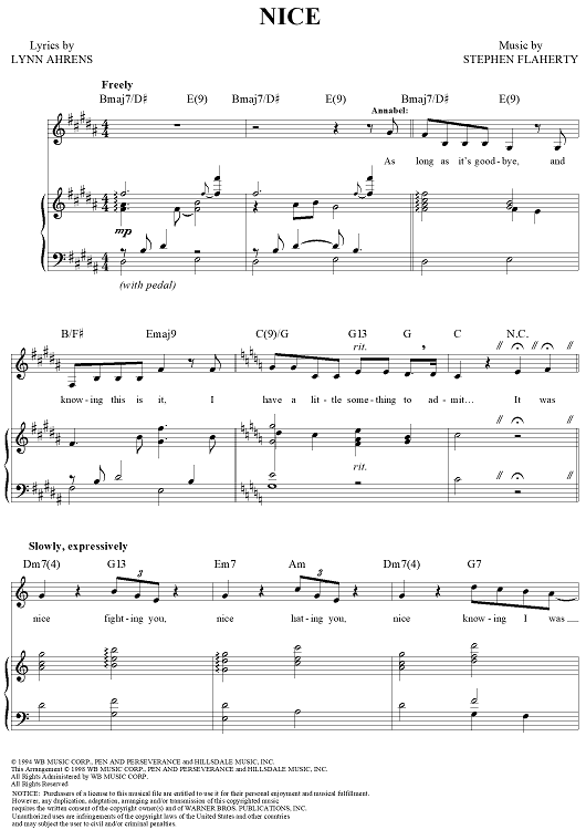Digital Sheet Music for Nice by Stephen Flaherty, Lynn Ahrens scored for Piano/Vocal/Chords; id:311576