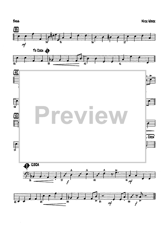 Digital Sheet Music for Nice Work If You Can Get It - Bass by , George Gershwin, Ira Gershwin, Dave Wolpe scored for Jazz Ensemble; id:437486