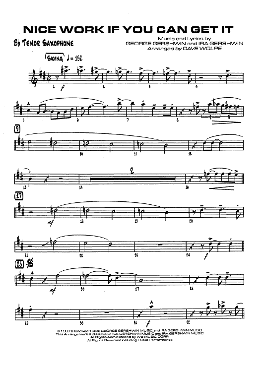 Digital Sheet Music for Nice Work If You Can Get It - Bb Tenor Sax by , George Gershwin, Ira Gershwin, Dave Wolpe scored for Jazz Ensemble; id:437492