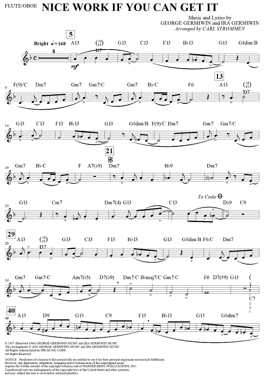 Digital Sheet Music for Nice Work If You Can Get It by George Gershwin, Ira Gershwin, Carl Strommen scored for Flute or Oboe; id:308560