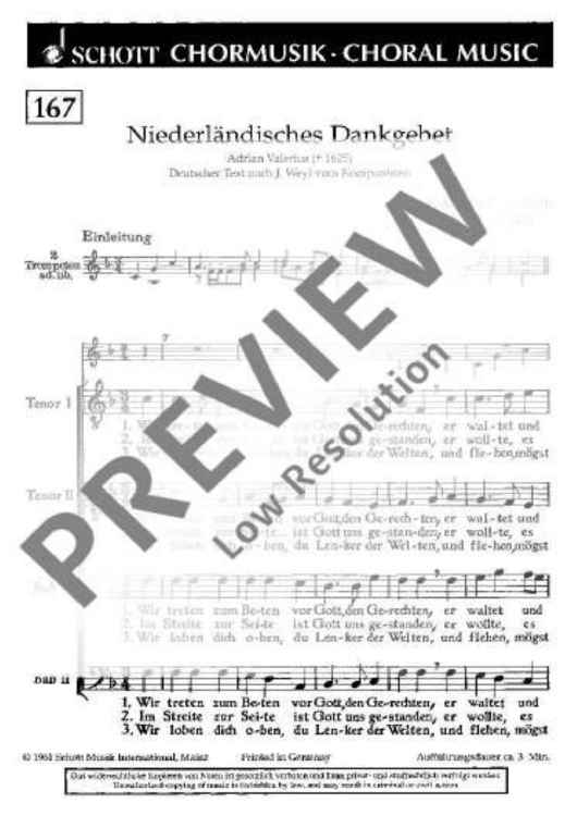 Digital Sheet Music for Niederländisches Dankgebet - Score by Friedrich Zipp scored for Men's Choir (ttbb) A Cappella Or With 2 Trumpets Ad Libitum; id:471940