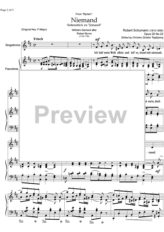 Digital Sheet Music for Niemand Op.25 No.22 by , Robert Schumann scored for Mezzo-soprano or Baritone/Piano; id:332701