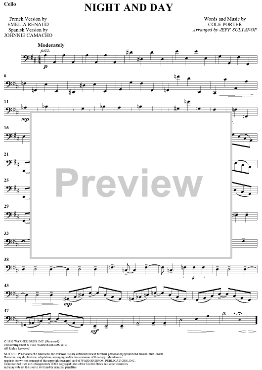 "Night and Day - Cello" Sheet Music by Cole Porter