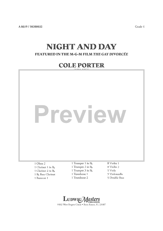 Digital Sheet Music for Night and Day - Featured in the M-G-M film The Gay Divorcée - Score by Mike Lewis, Cole Porter scored for Full Orchestra; id:458789