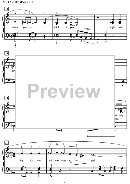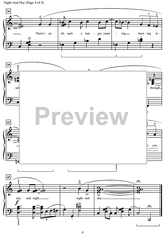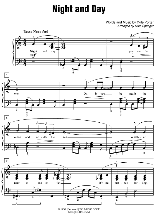 Digital Sheet Music for Night and Day by Cole Porter, Mike Springer scored for Easy Piano; id:497924