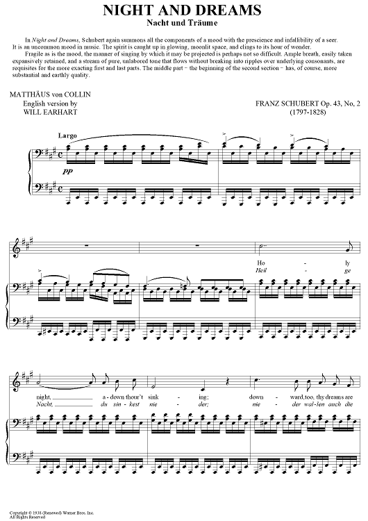 "Night and Dreams (Nacht und Träume)" Sheet Music by Franz Schubert