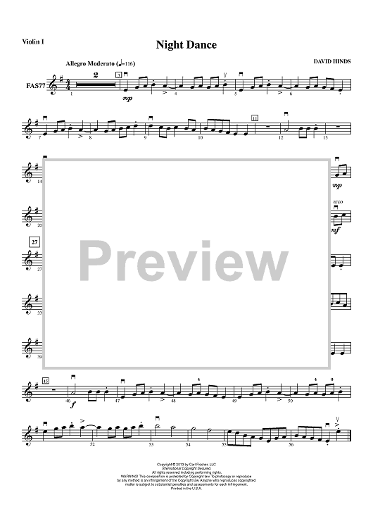 "Night Dance - Violin 1" Sheet Music by David Hinds