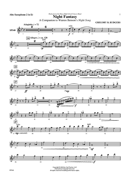 "Night Fantasy - Alto Sax 2" Sheet Music by Gregory B. Rudgers