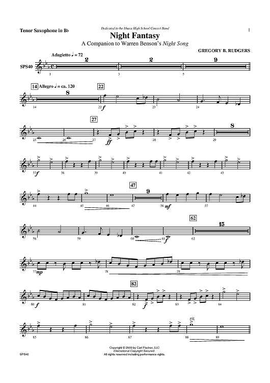 "Night Fantasy - Tenor Sax" Sheet Music by Gregory B. Rudgers