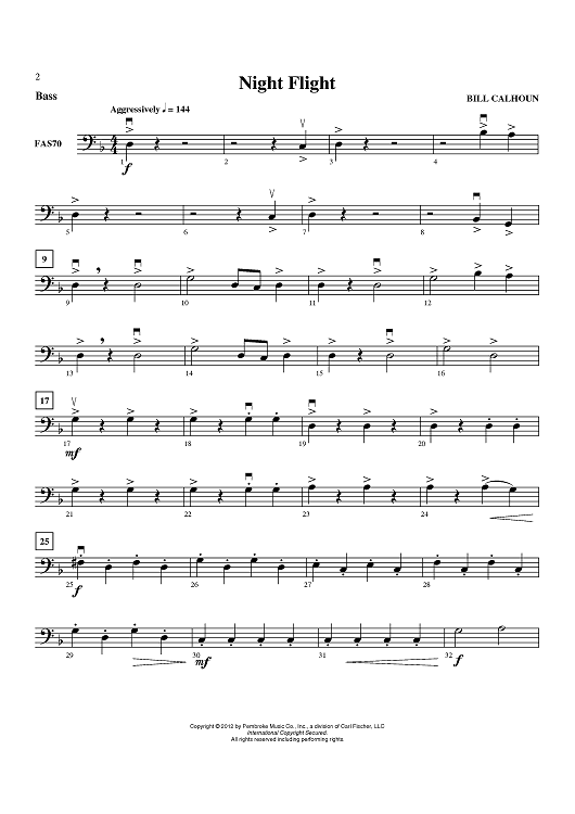 "Night Flight - Bass" Sheet Music by Bill Calhoun