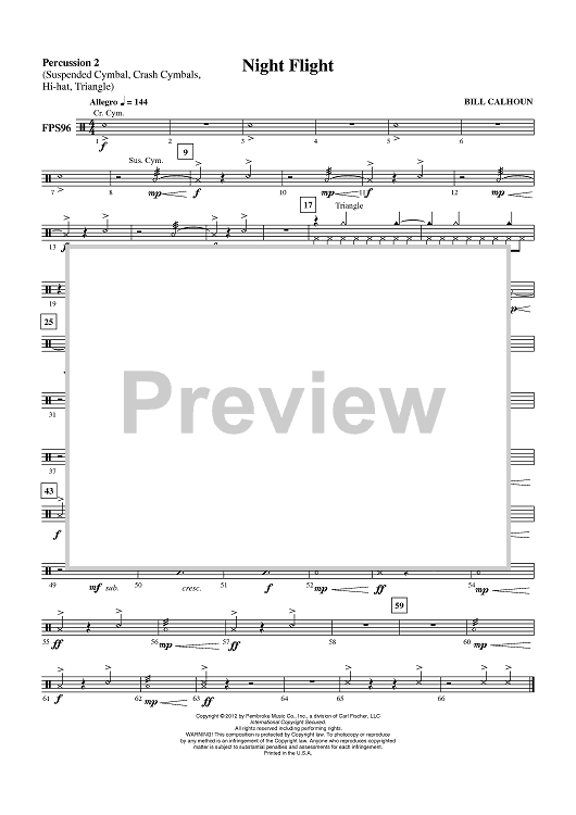 Digital Sheet Music for Night Flight - Percussion 2 by Bill Calhoun scored for Concert Band; id:430916