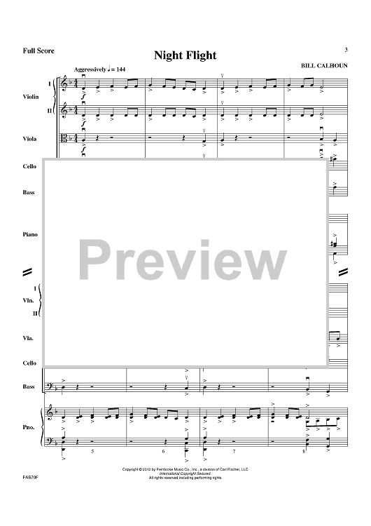 Digital Sheet Music for Night Flight - Score by Bill Calhoun scored for String Orchestra; id:431694