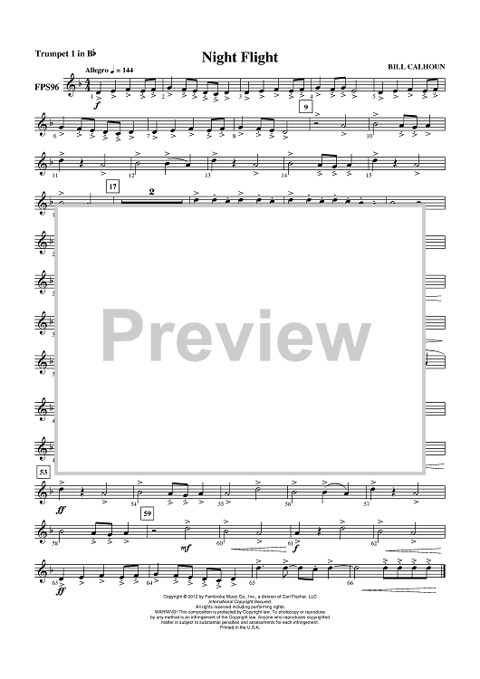 Digital Sheet Music for Night Flight - Trumpet 1 in Bb by Bill Calhoun scored for Concert Band; id:430907