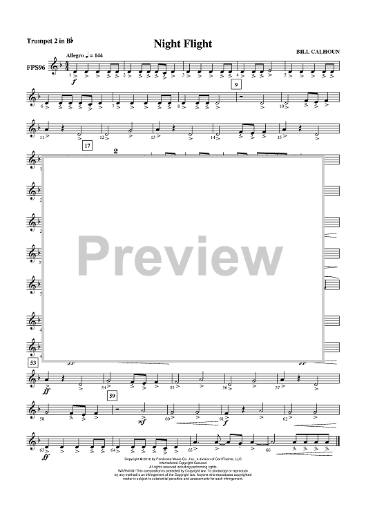 Digital Sheet Music for Night Flight - Trumpet 2 in Bb by Bill Calhoun scored for Concert Band; id:430908
