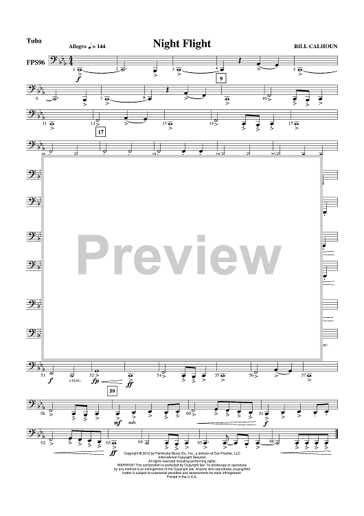 Digital Sheet Music for Night Flight - Tuba by Bill Calhoun scored for Concert Band; id:430912