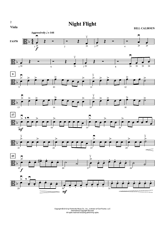 "Night Flight - Viola" Sheet Music by Bill Calhoun