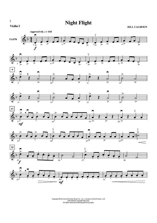 "Night Flight - Violin 1" Sheet Music by Bill Calhoun
