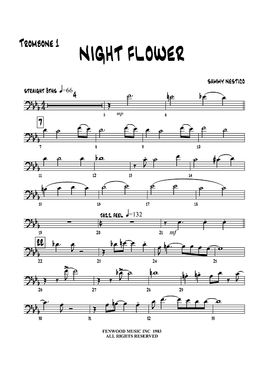 "Night Flower - Trombone 1" Sheet Music by Sammy Nestico