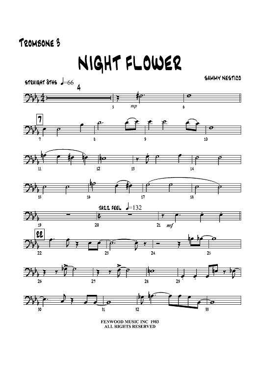 "Night Flower - Trombone 3" Sheet Music by Sammy Nestico