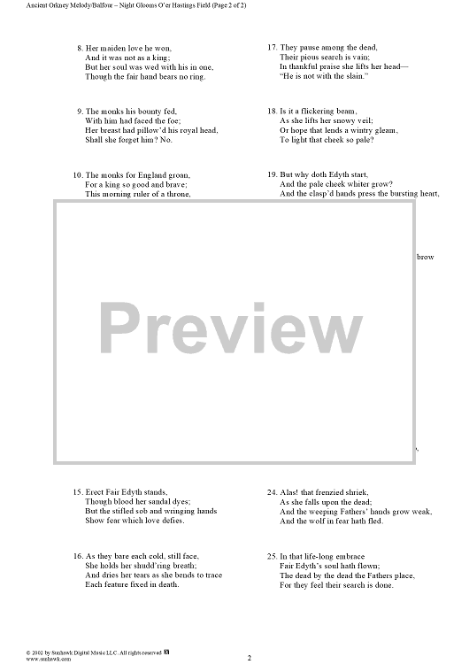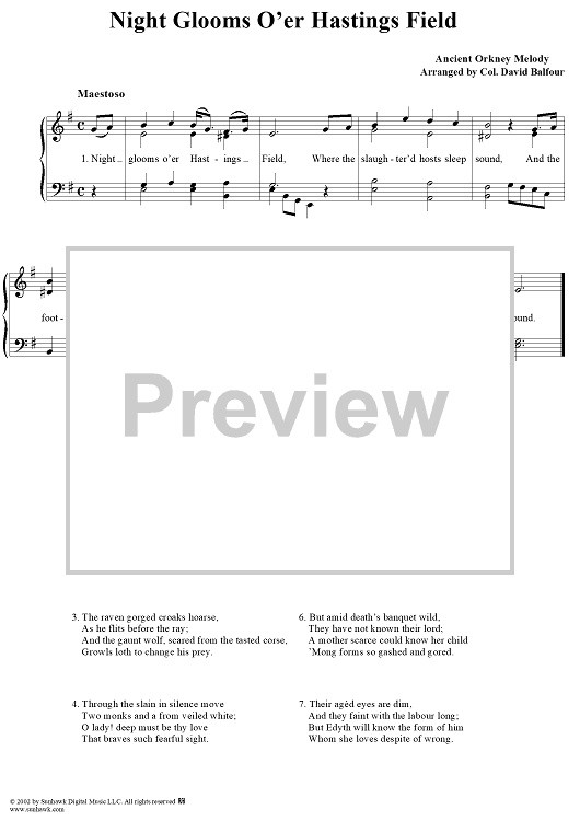 "Night Glooms O'er Hastings Field" Sheet Music by